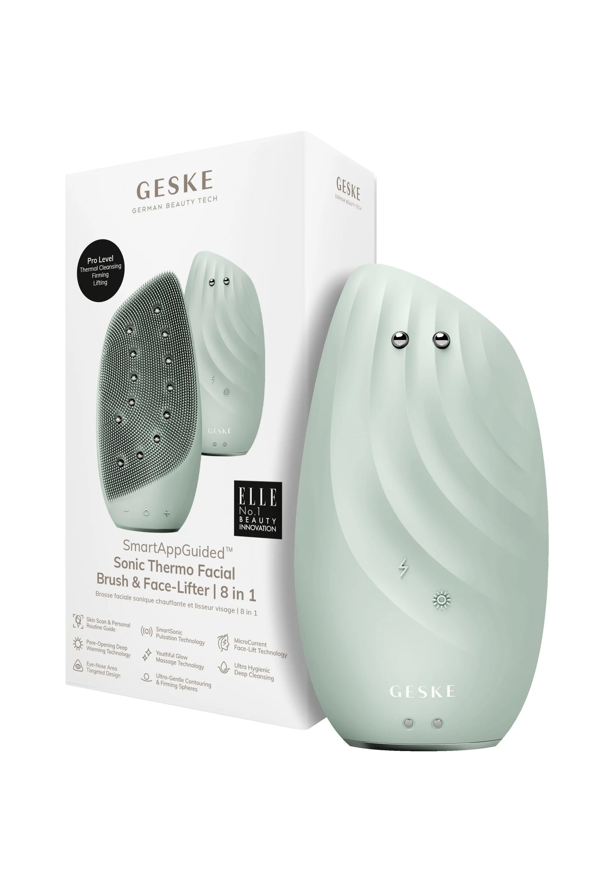 Sonic Thermo Facial Brush & Face-Lifter 8 in 1 kombinerar djup rengöring, uppstramning och anti-ageing i en smart enhet. Med över 8 000 pulseringar per minut tar den effektivt bort smuts, fett och smink på bara 30 sekunder, samtidigt som Thermo Deep Warming Pearls hjälper aktiva ingredienser att tränga djupt in i huden.
