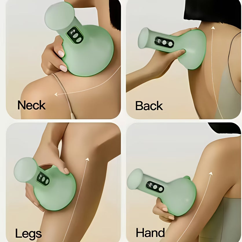 En portabel elektrisk massageapparat som kombinerar koppning och massage för djup muskelavslappning. Perfekt för mage, lår, armar och rygg. Ger en SPA-liknande upplevelse hemma.